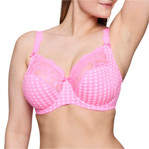 This is one of our go-to bras for exceptional fit, shape and support. Madison is incredibly comfortable while giving you so much support. You'll forget you're wearing it! The cup is shallower than Prima Donna's Deauville but deeper than Couture, making it the "goldilocks" of Prima Donna. Fun, fresh and flirty, the Madison line pairs opaque lace with a cute tone-on-tone gingham pattern for a fun everyday bra. The full cup underwire bra provides ample support and full coverage.
